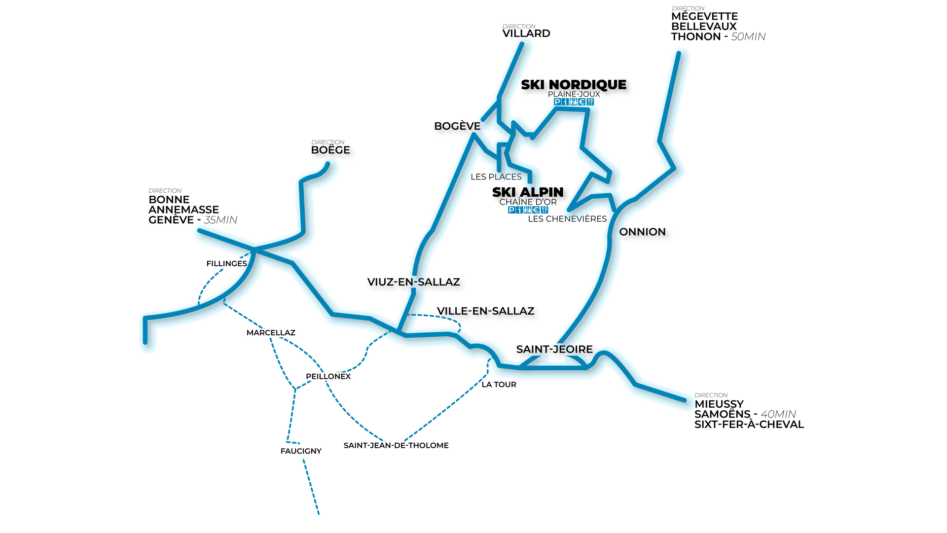 - Gare TGC de Genève à 25km de Viuz en Sallaz